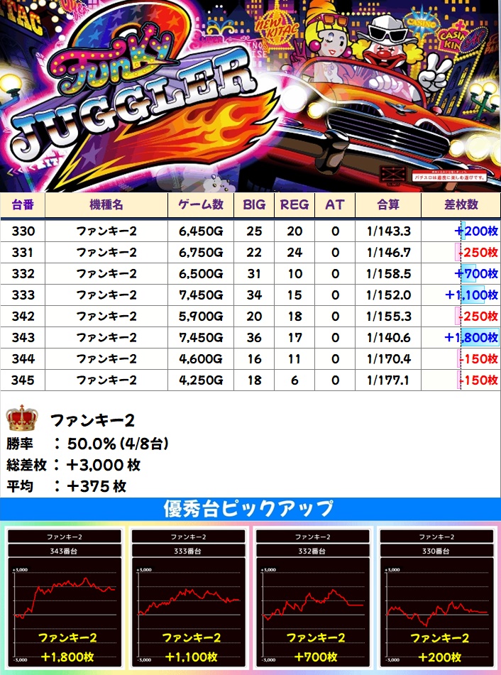 もちろん単品優秀台も全体からしっかりと確認!今回も綺麗な右肩上がりのグラフが多いだけに、質の高い優秀台が全体に散りばめられていましたね!