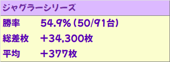 若葉まいたけさん来店ということで、お馴染みのジャグは全体で総差枚+3.4万枚&平均+377枚としっかり好結果に!