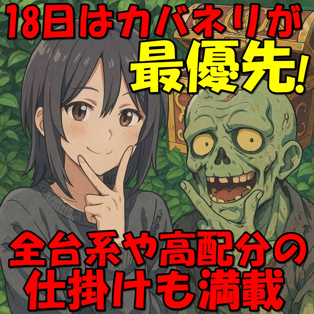 ということで、今回も18日お馴染みの【カバネリ】がしっかりと仕掛け候補に!全台しっかりと打ち込まれ、高挙動台を多数確認できました!