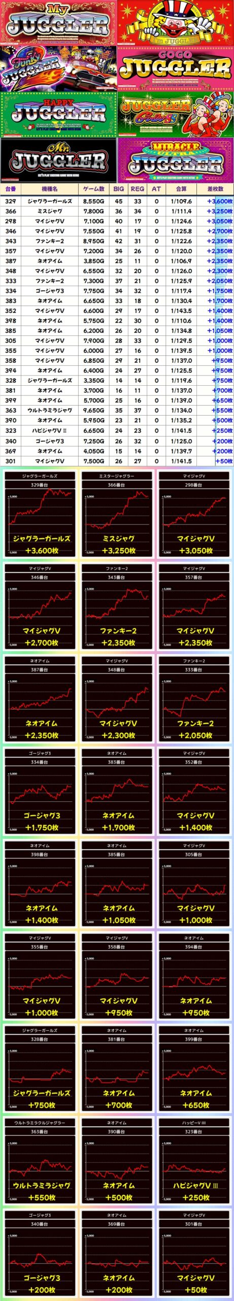 ⑧の日と言えば、もちろんジャグ系も!各機種からボーナス合算良き優秀台を多数確認する事ができました!