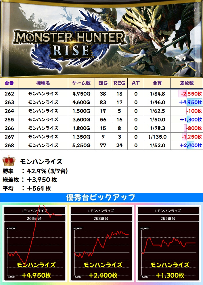 そして推すすめ最終日を迎えた【L東京喰種】【モンハンライズ】からも、有終の美を飾るべく優秀台を多数確認!