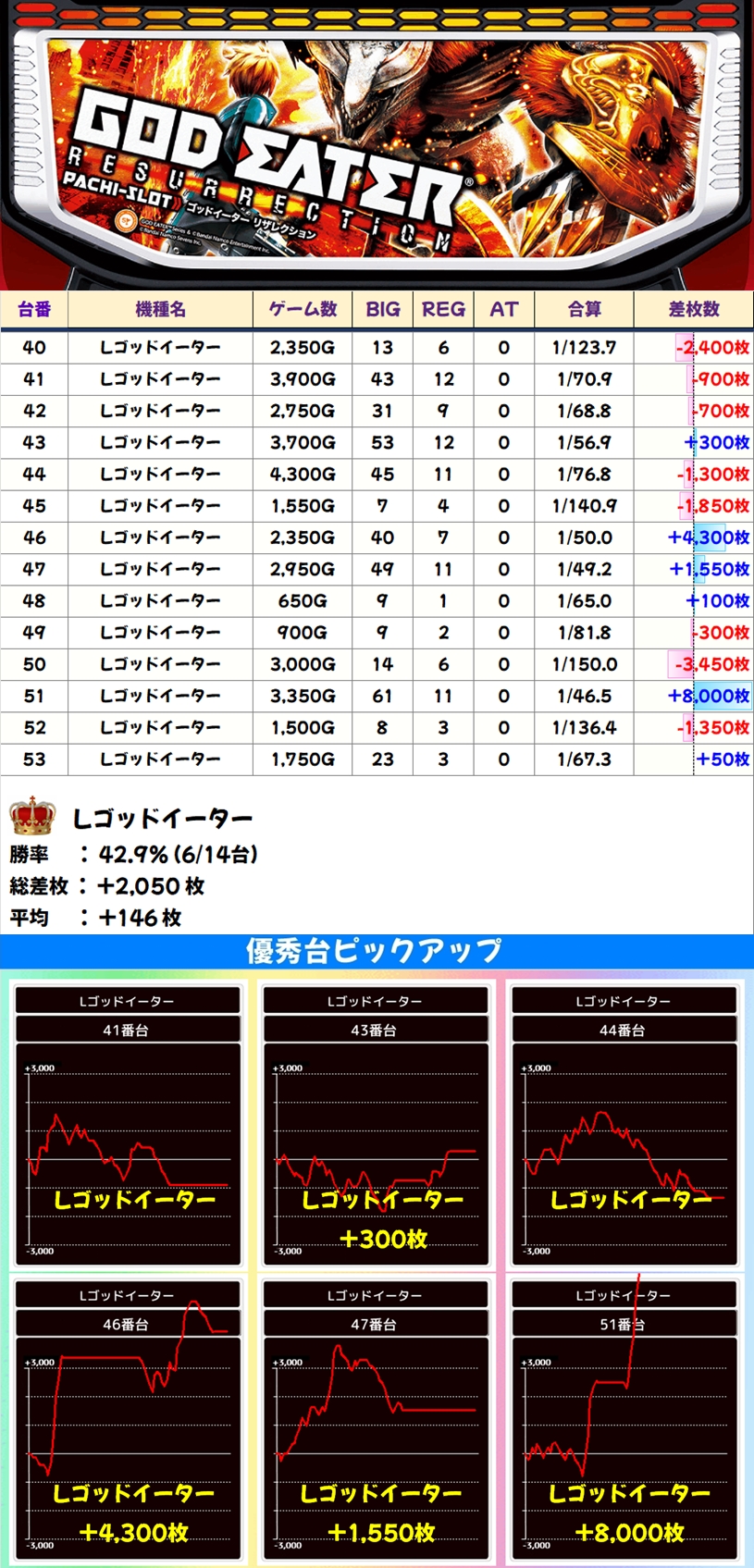 🌈ゴッドイーター(14台)【平均+146枚】
