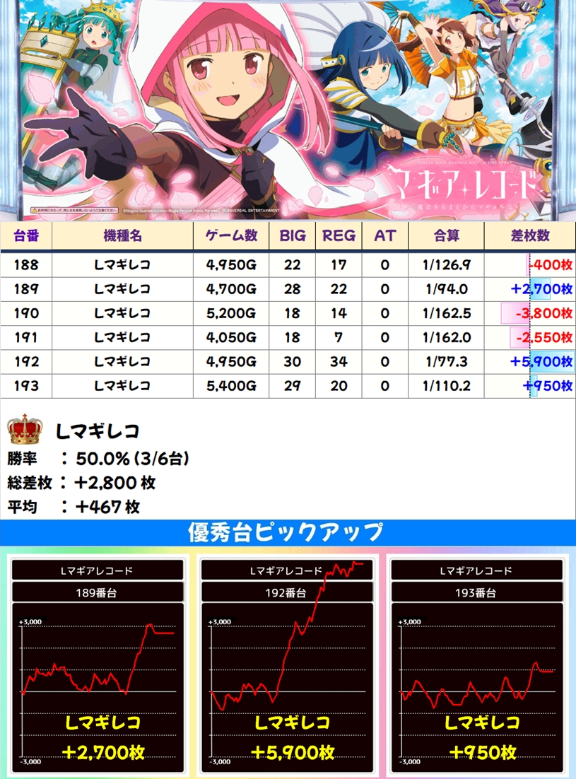 🌈マギレコ(6台)【平均+467枚】