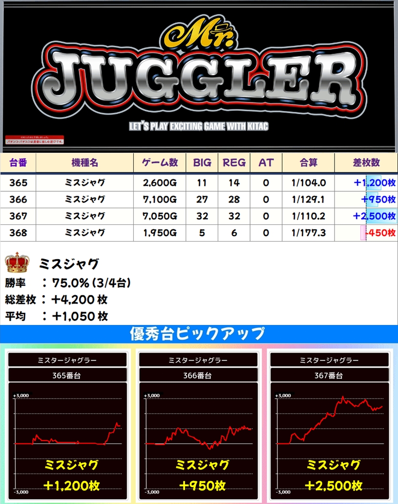 🌈ミスジャグ(4台)【平均+1050枚】