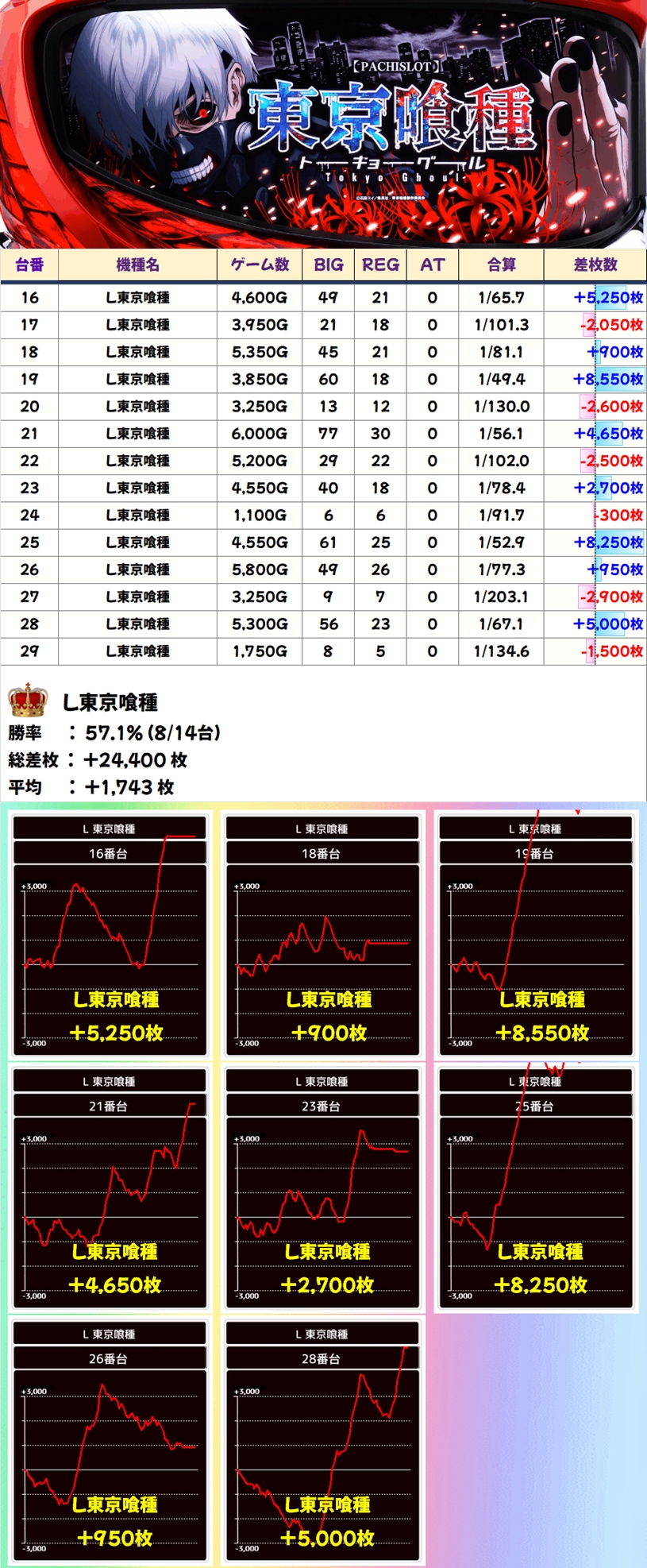 🌈東京喰種(14台)【平均+1743枚】