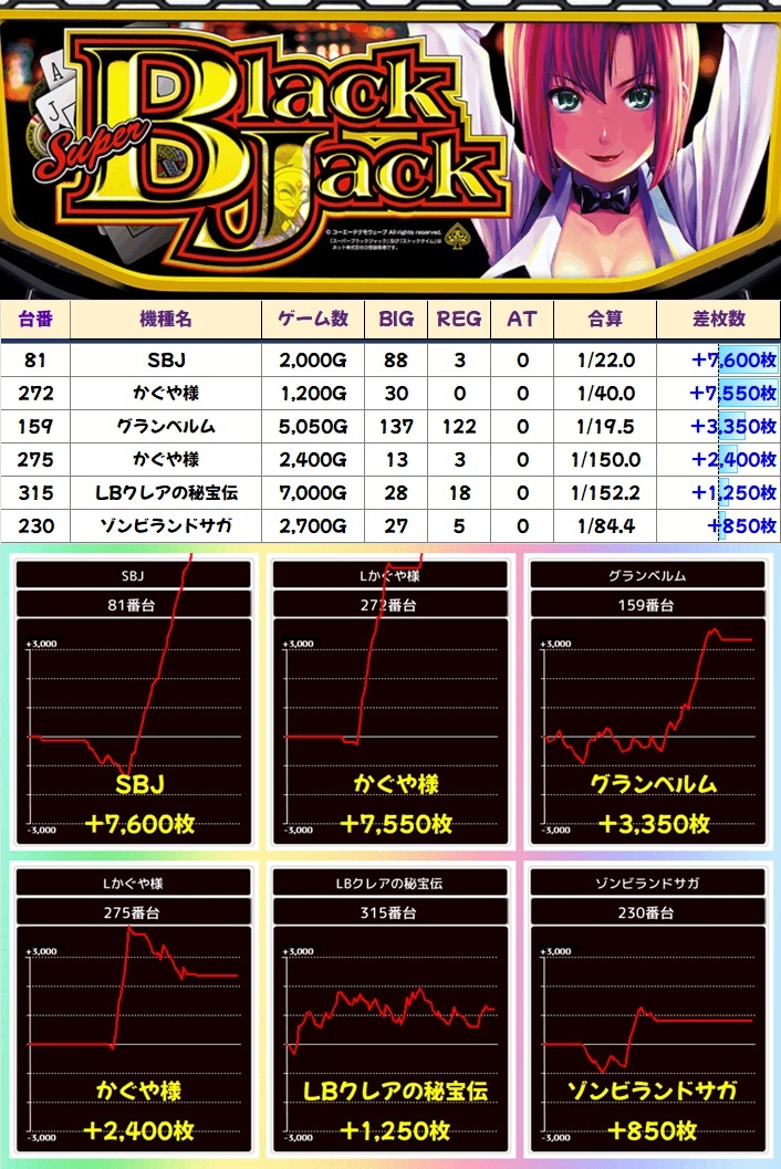 その他からも【SBJ】【かぐや様】【グランベルム】【LBクレア】【ゾンビランドサガ】からは単品優秀台を確認!やはり2日は萌え系機種にも注目です!