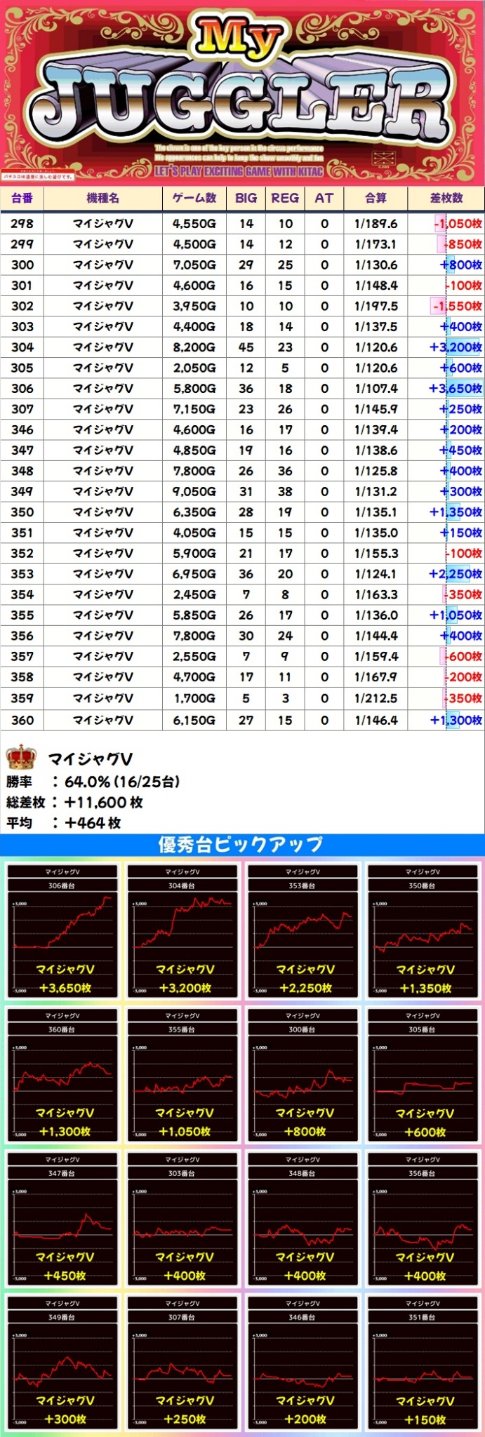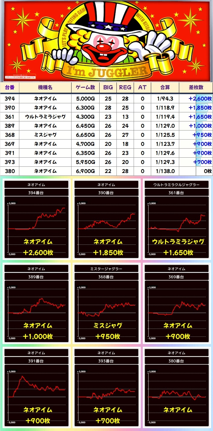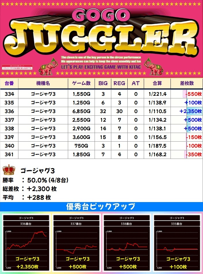 ジャグ系からも多数の優秀台アリ!マイジャグ&ゴージャグを中心に高配分だった機種も複数ありました!