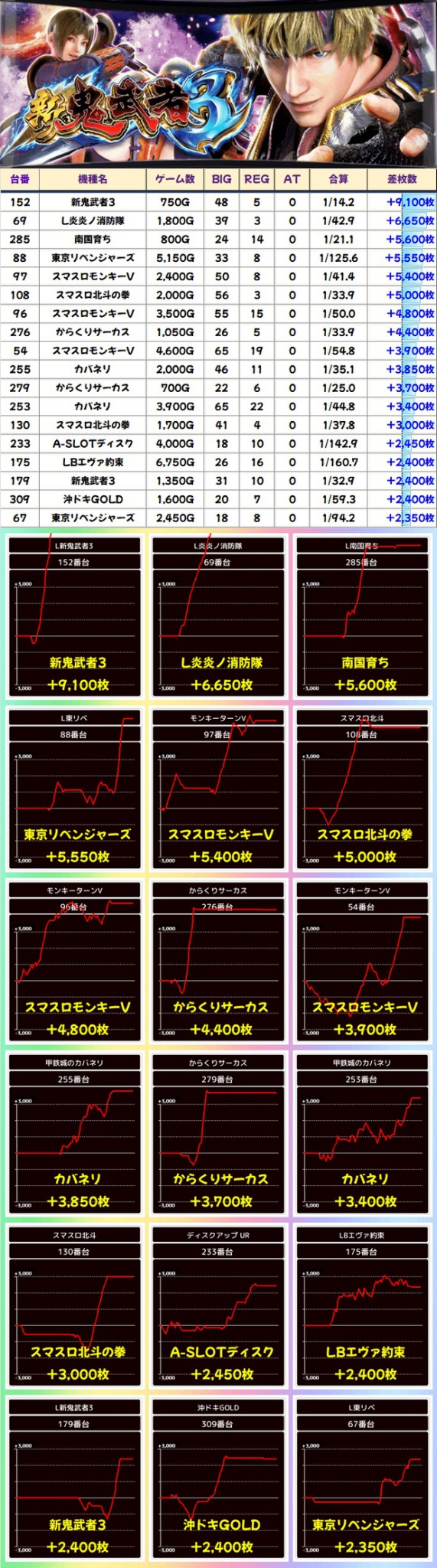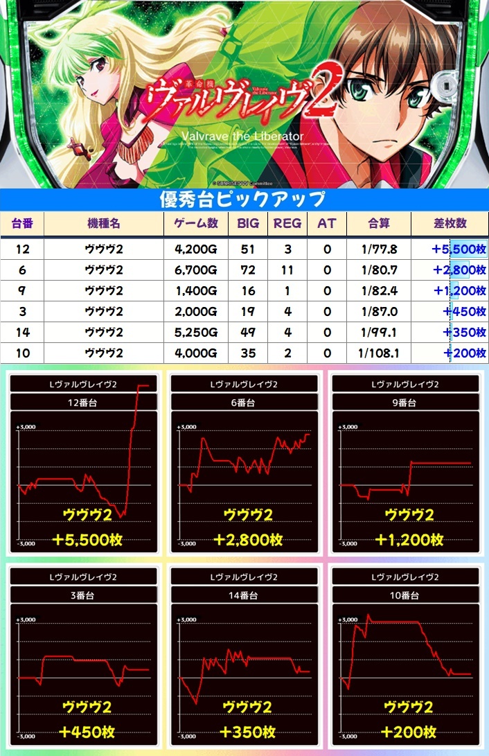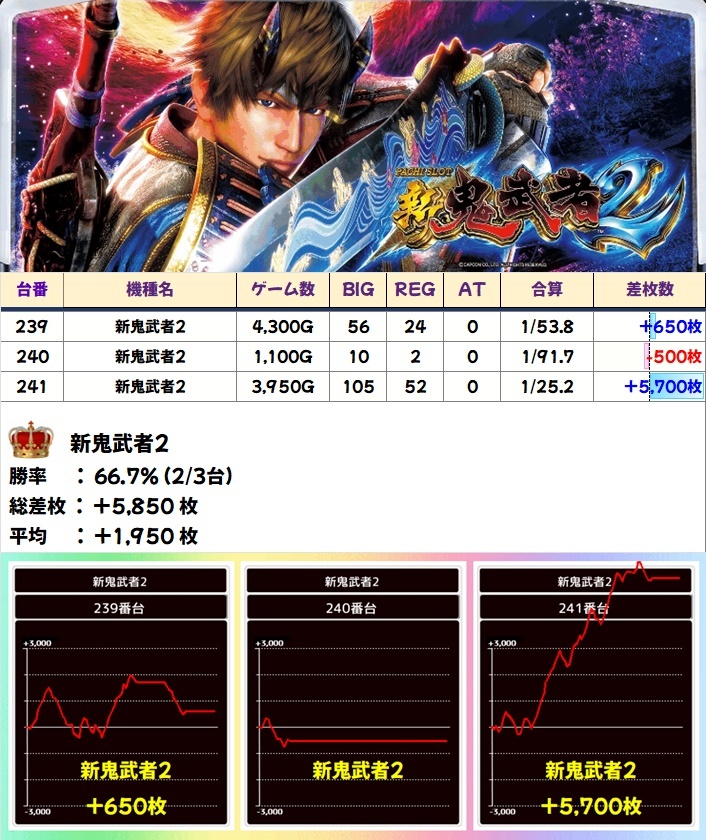 そして【新鬼武者2】は高配分、【ヴヴヴ2】からも多数の優秀台を確認!②に纏わる機種にしっかりと仕掛けがありましたね!