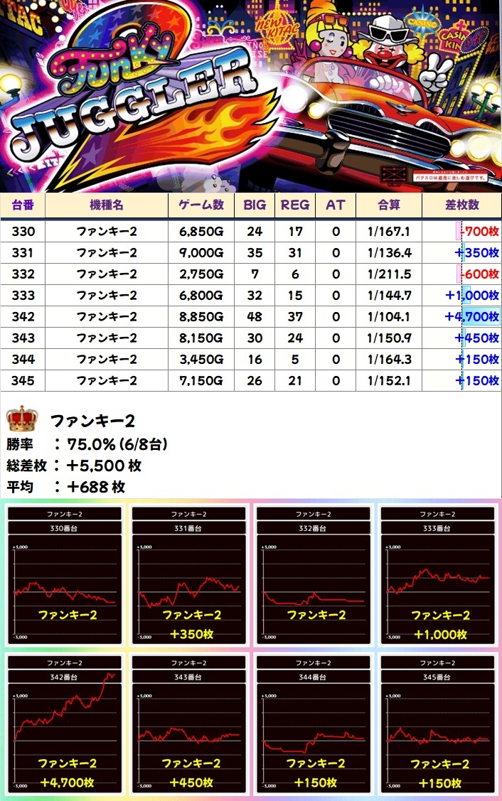 🌈ファンキー2(8台)【平均+688枚】