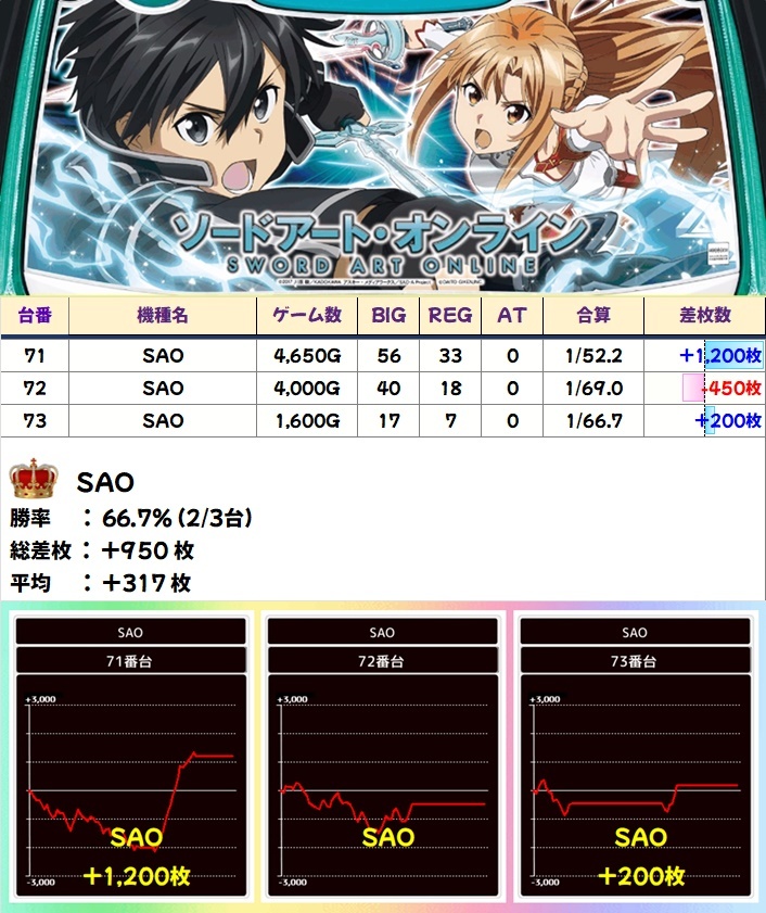 🌈SAO(3台)【平均+317枚】