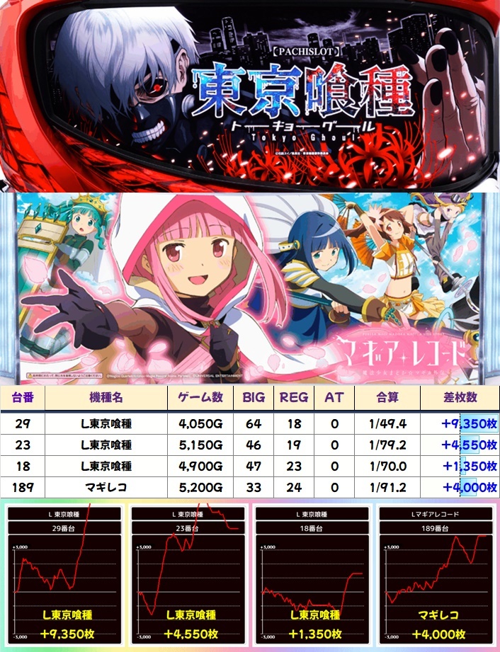また現在推すすめ中の【東京喰種】【マギレコ】からも優秀台を確認できました!