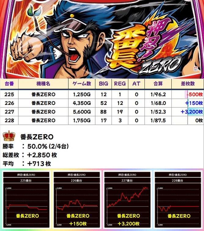 🌈番長ZERO(4台)【平均+713枚】
