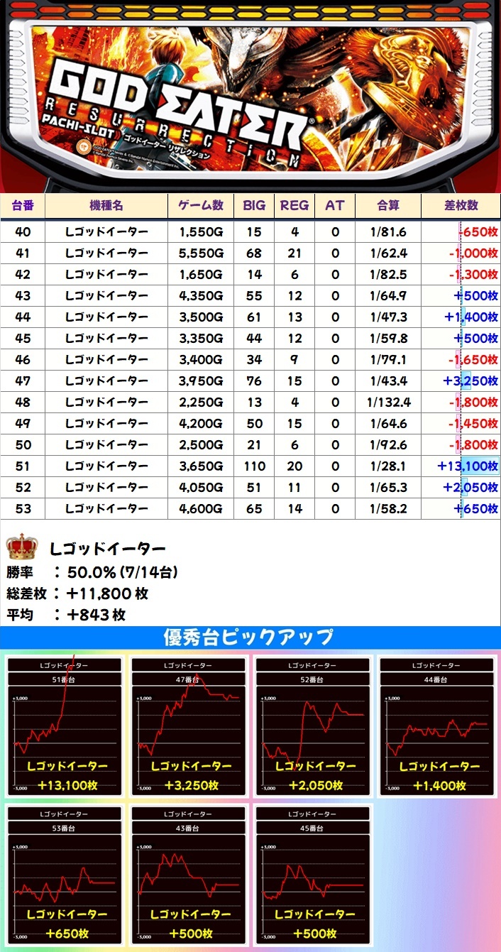 🌈Lゴッドイーター(14台)【平均+843枚】