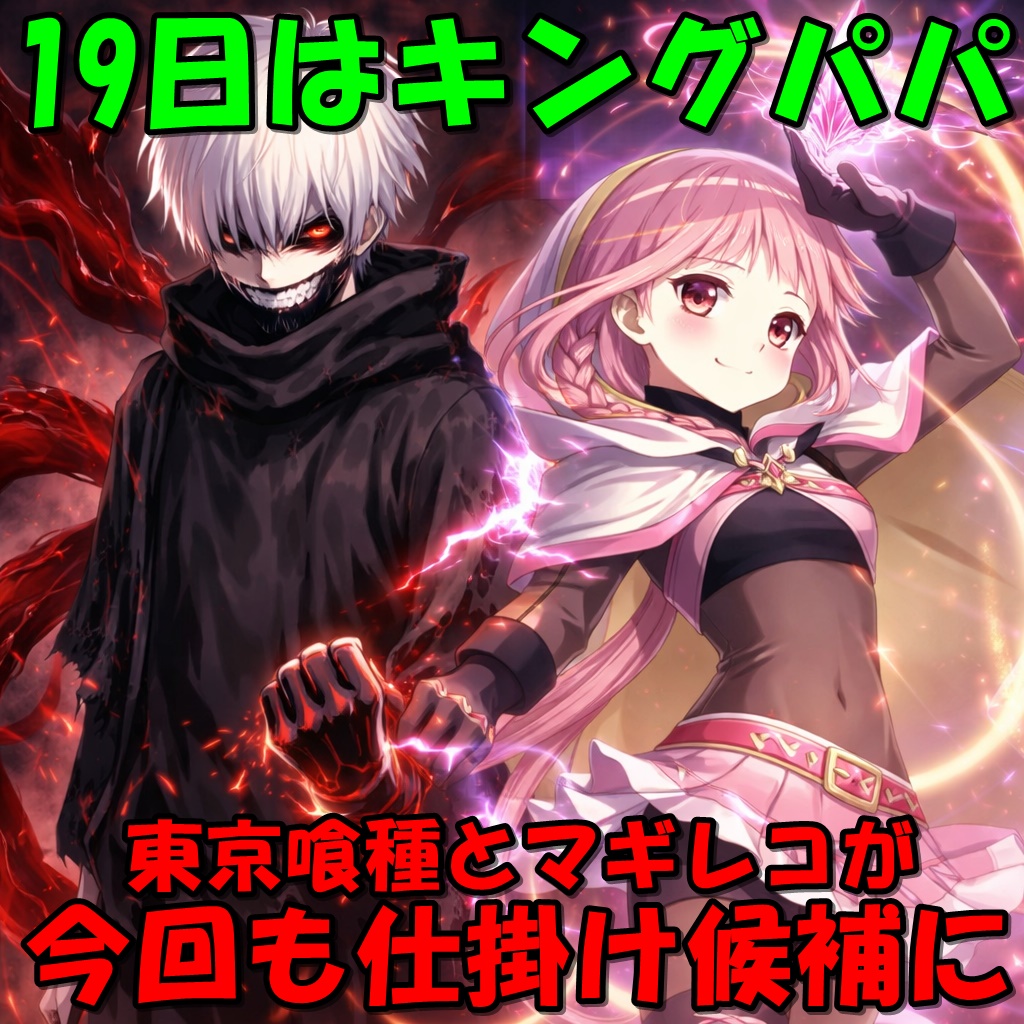 今回の19日も【L東京喰種】【マギレコ】がバッチリ仕掛け候補だったので、次回1/19もこの2機種は最優先ですね!また、その他の仕掛けや前日優秀台の据え置きなど、19日の特徴もしっかりと見られた一日となりました。来年のキングパパも注目の特定日だけに要チェックです!