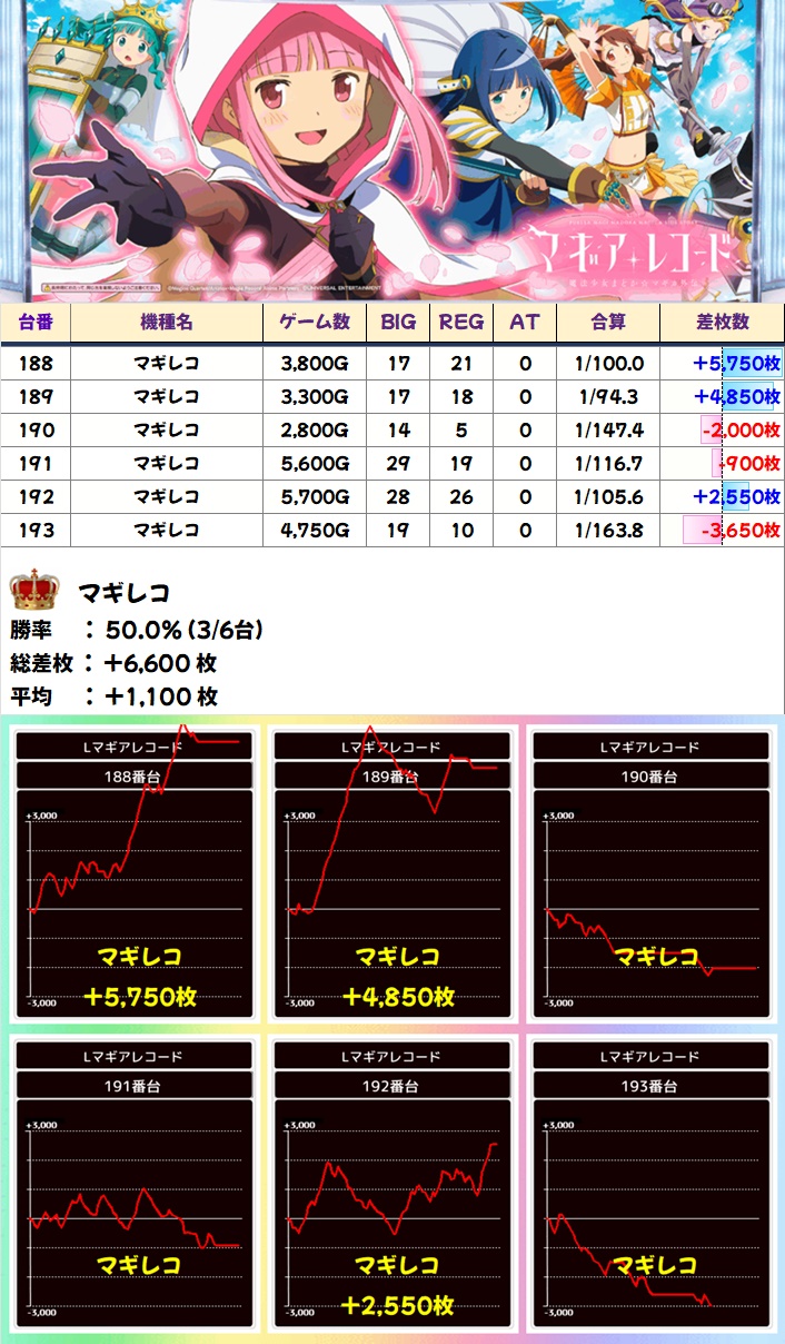 🌈マギレコ(6台)【平均+1100枚】