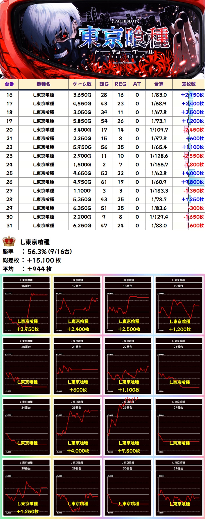 🌈東京喰種(16台)【平均+944枚】