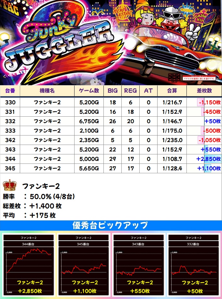 🌈ファンキー2(8台)【平均+175枚】