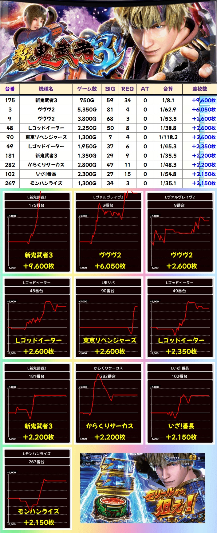 人気スマスロ機種からも大量獲得台も多数確認!各機種でしっかりと単品優秀台が潜んでいましたね!