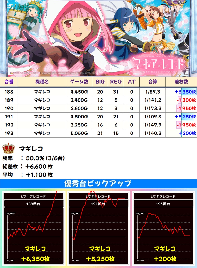 🌈マギレコ(6台)【平均+1100枚】