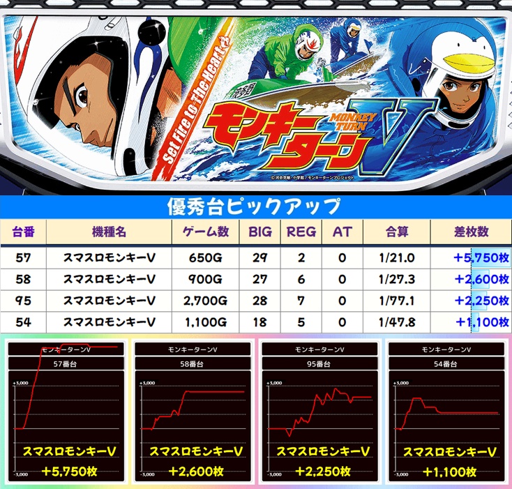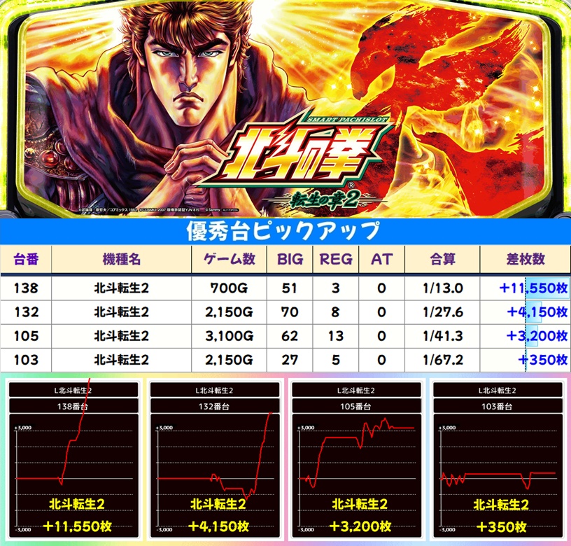 【北斗転生2】【ゴッドイーター】【モンキーV】の人気スマスロからも複数の優秀台アリ!北斗転生2と月間オススメのゴッドイーターからは万枚オーバー台、モンキーVからも+5000枚オーバー台を確認できました!