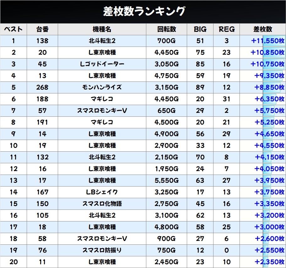 店内差枚数ランキング