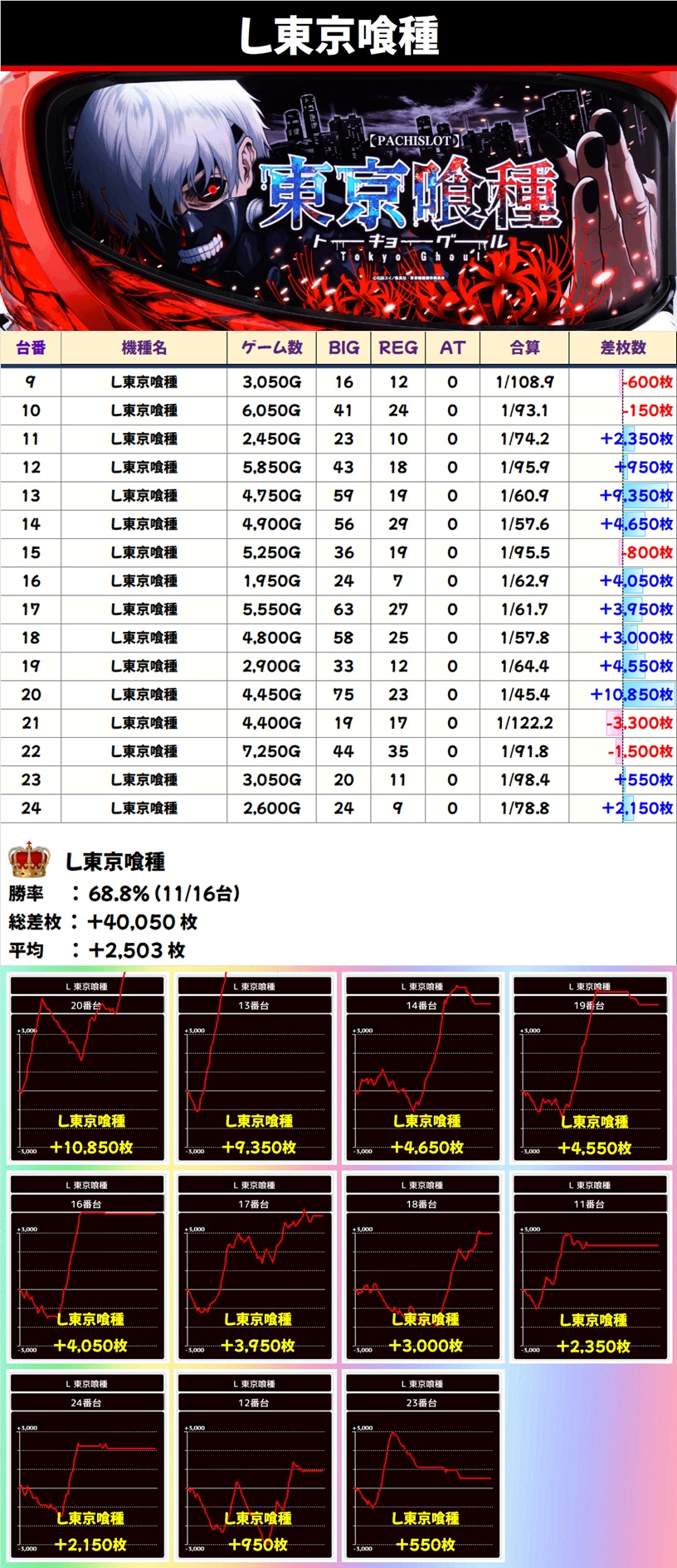 🌈東京喰種(16台)【平均+2503枚】