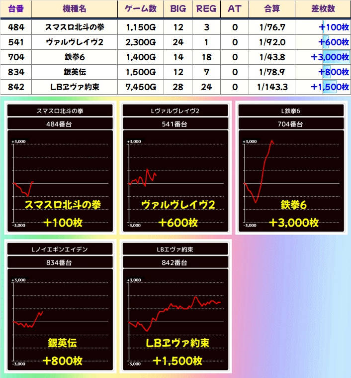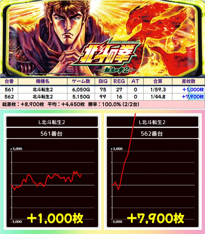 両機種に+4000枚クラスの台があり、かつ全台がプラスに!