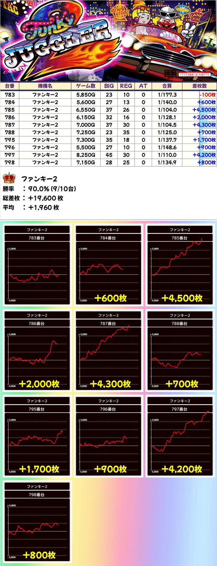 【全系候補】ファンキー2(9/10台+)➡平均+1,960枚