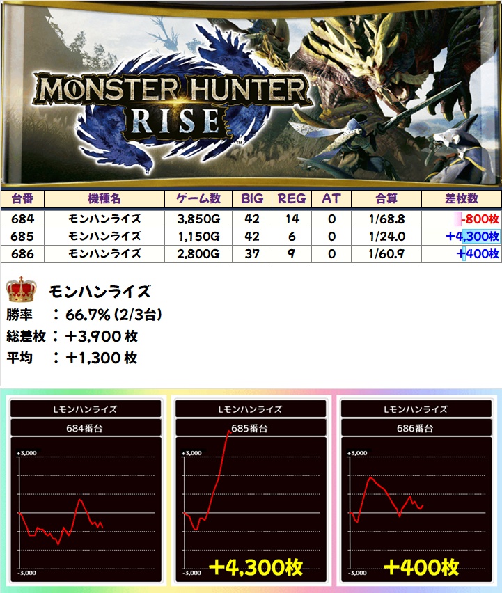 【全系候補】モンハンライズ(2/3台+)➡平均+1,300枚