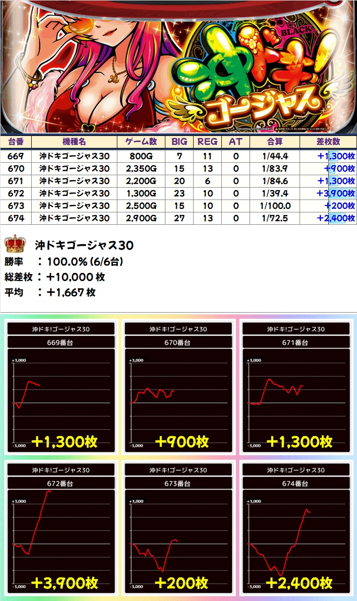 【全系候補】沖ドキゴージャス30(6/6台+)➡平均+1,667枚