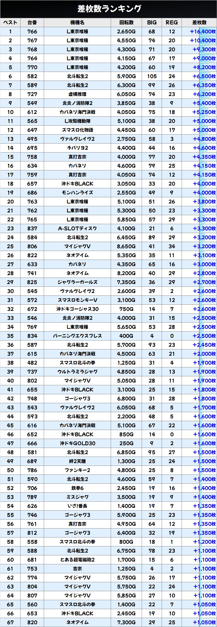 差枚数ランキングをチェック!