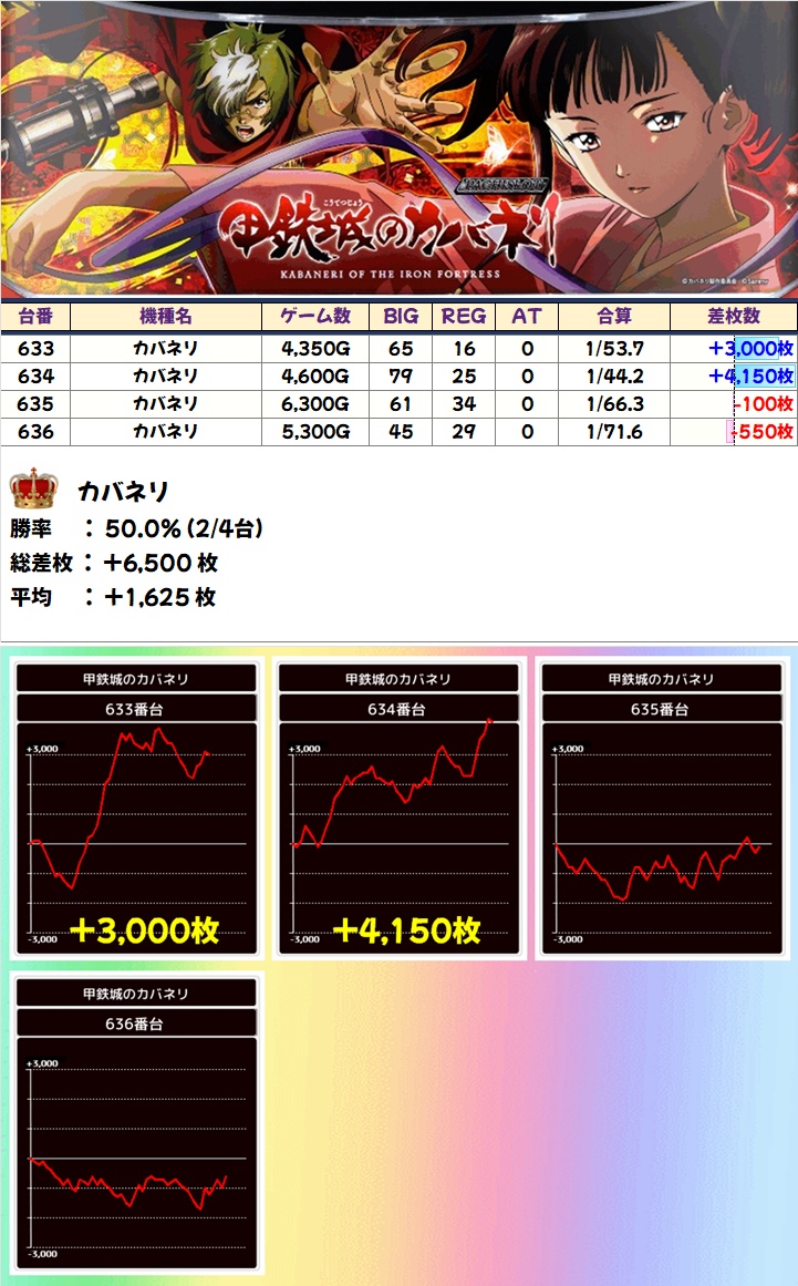 📅3/13:カバネリ(3/3台+)➡平均+3,467枚 ※634番台稼働停止