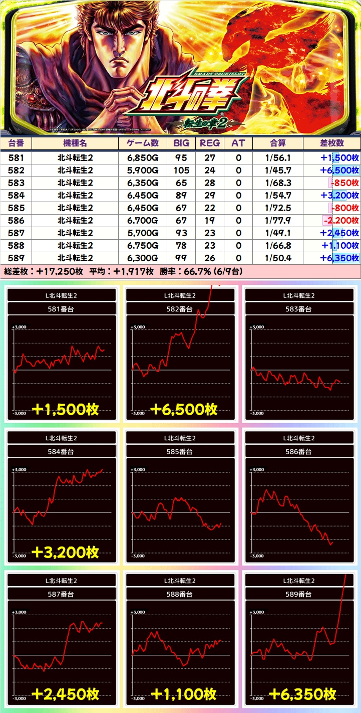 【9台並び】北斗転生2:581-589番台➡平均+1,917枚