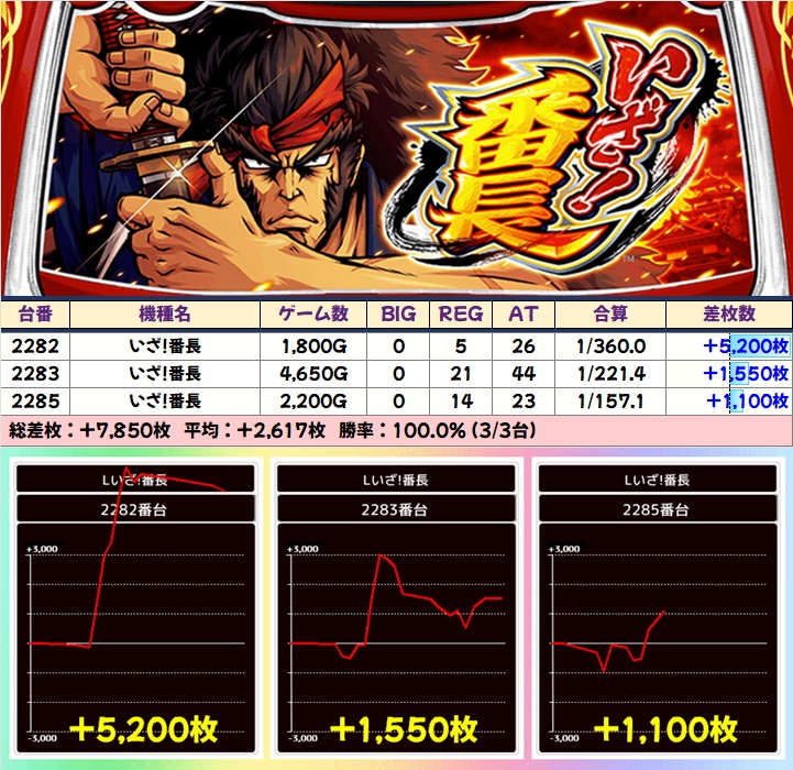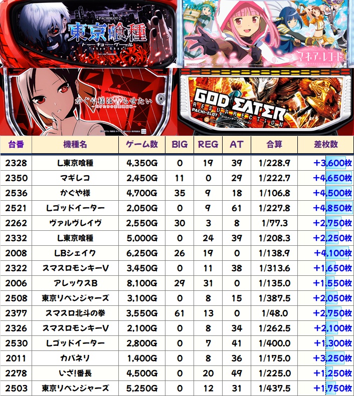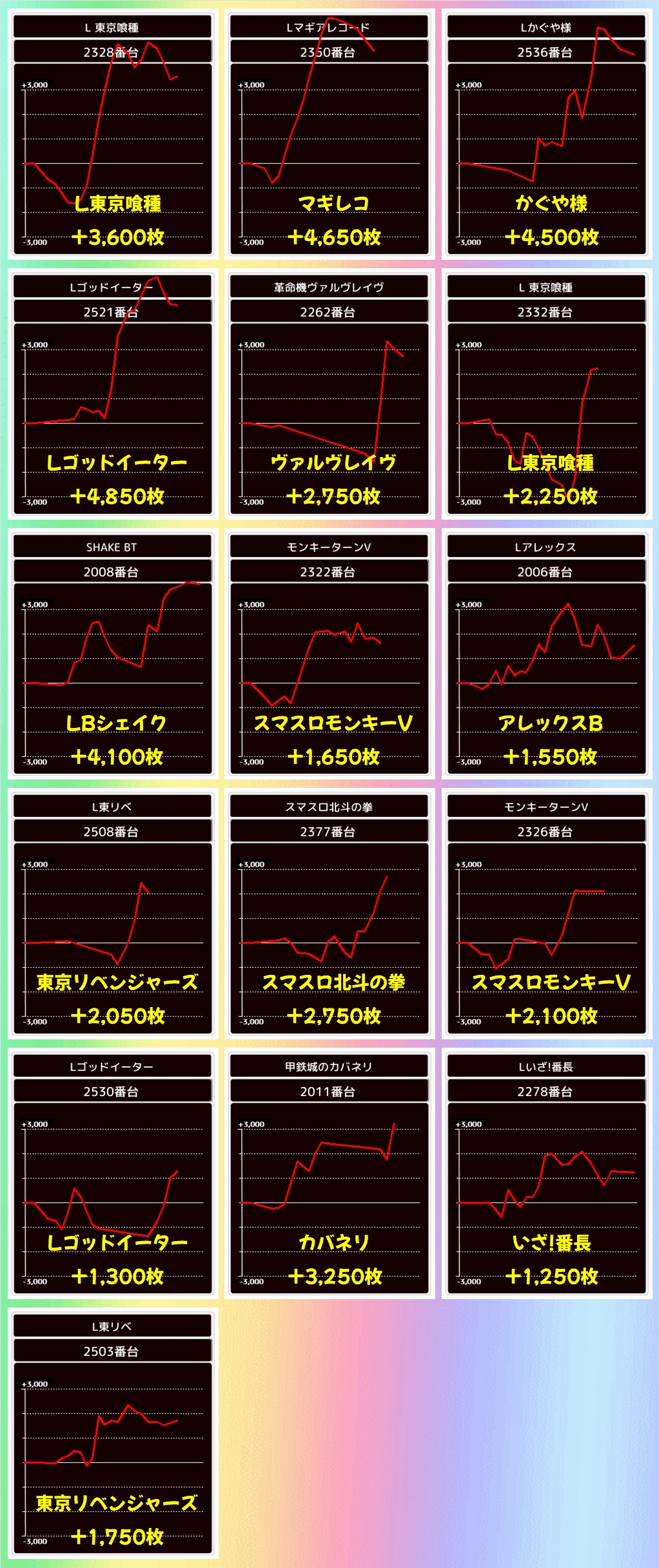 上記仕掛け以外にも+4000枚以上×4台など、この日は単品の優秀台も充実!