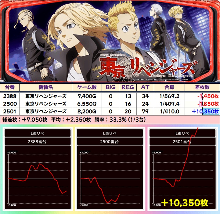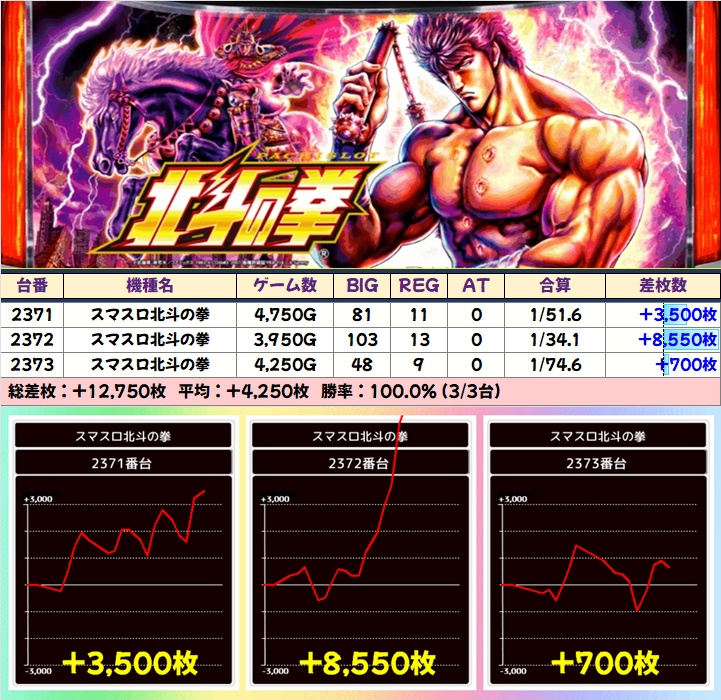 この日は覇王BOX(北斗と東リベのBOX)から「北斗の拳」の+8500枚オーバー、「東リベ」万枚オーバーなど優秀台が爆誕!