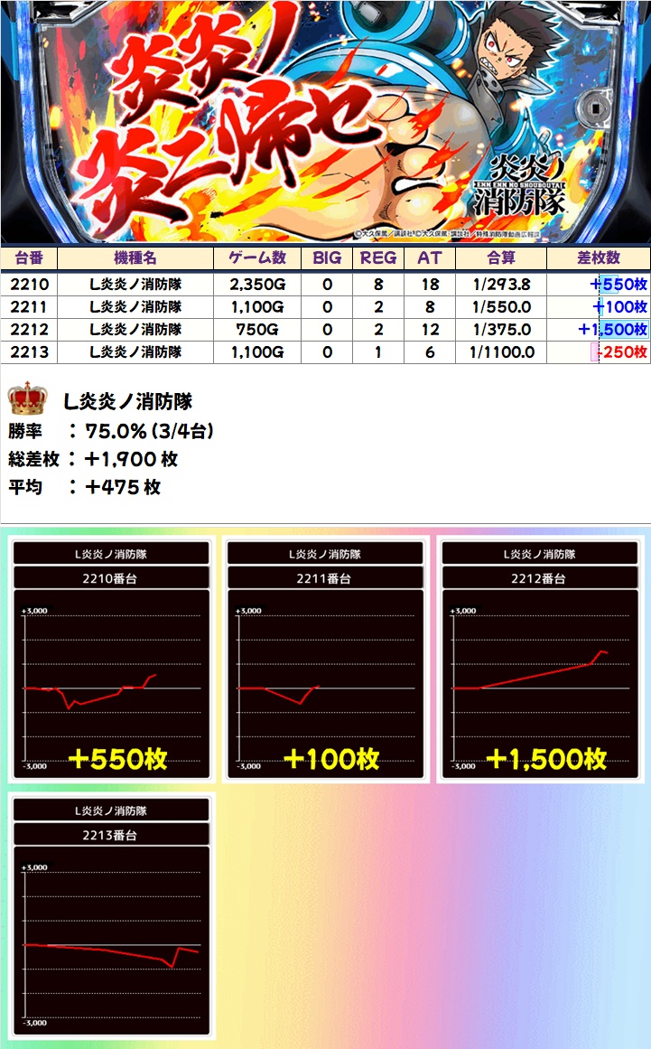 4台中3台がプラスの「L炎炎ノ消防隊」および「鉄拳6」が全台系だった模様!