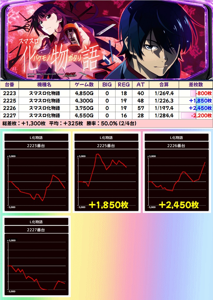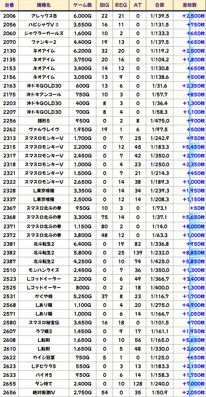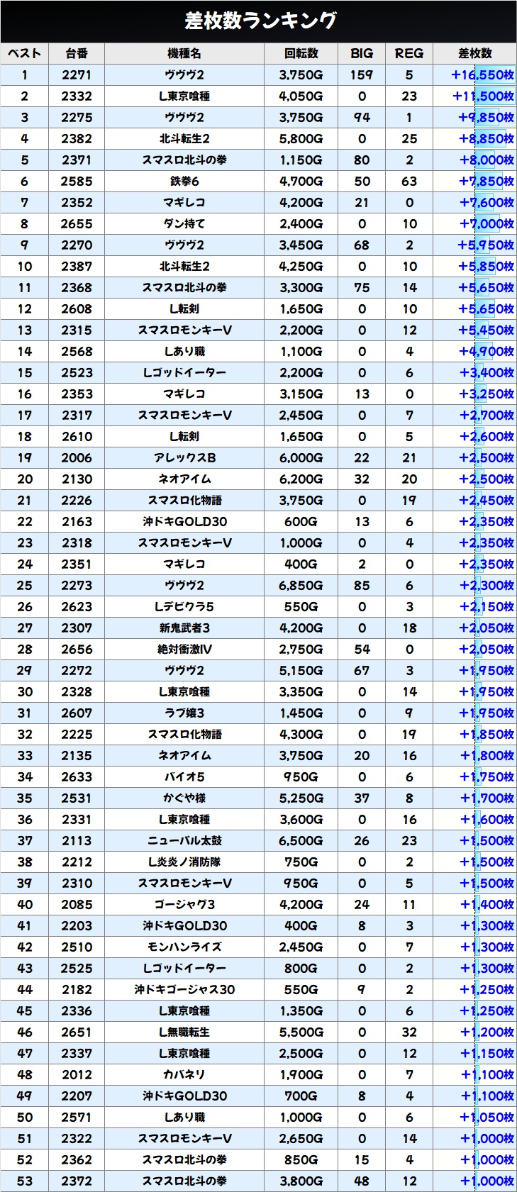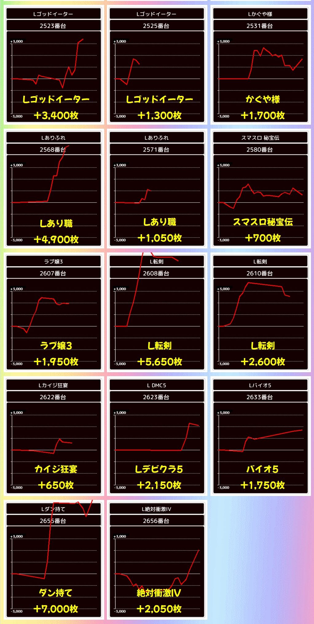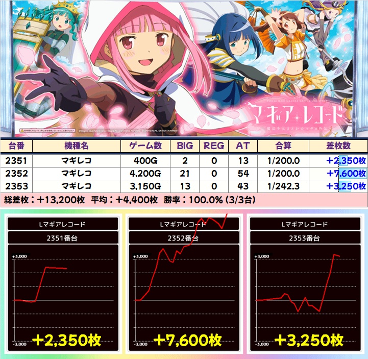 特に「ヴヴヴ2」&「東京喰種」&「マギレコ」は猛爆台が多数で、全て平均+4000枚以上と抜群でした!