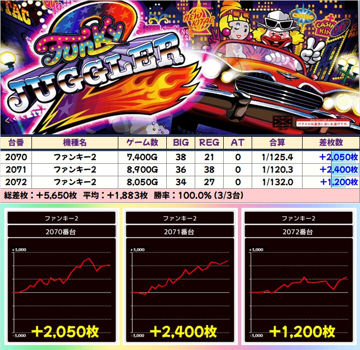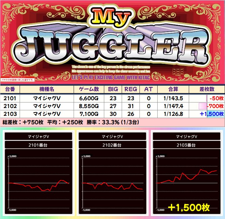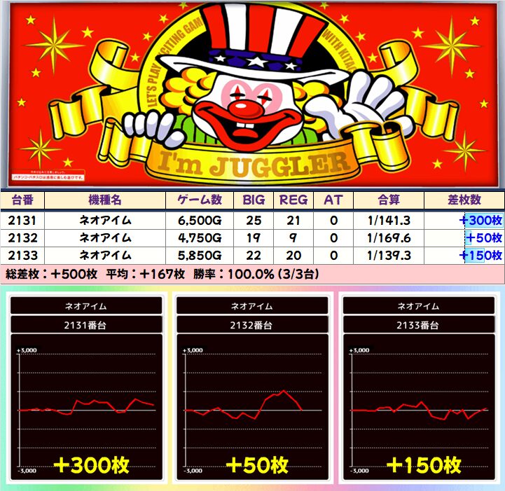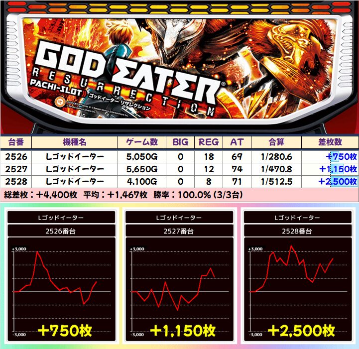 全台フル稼働&全台プラスで平均+約1300枚と文句なしの結果に! 次回は果たして!?