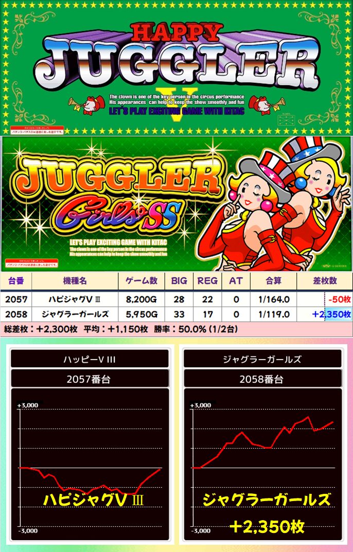 【2台並び】ハピジャグ・ジャグラーガールズ:2057-2058番台