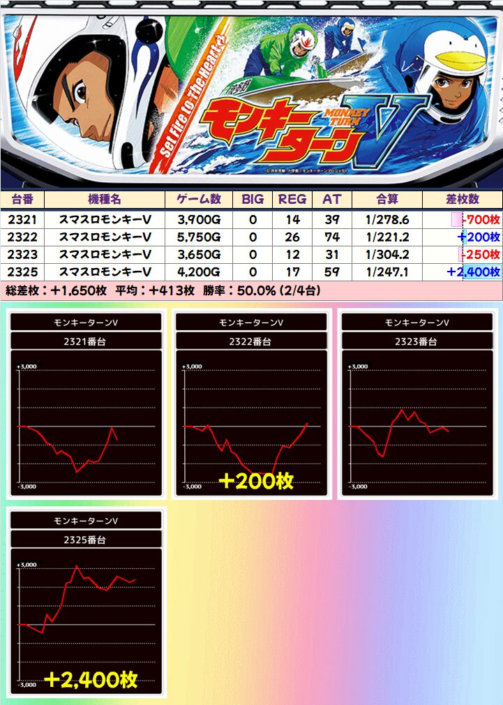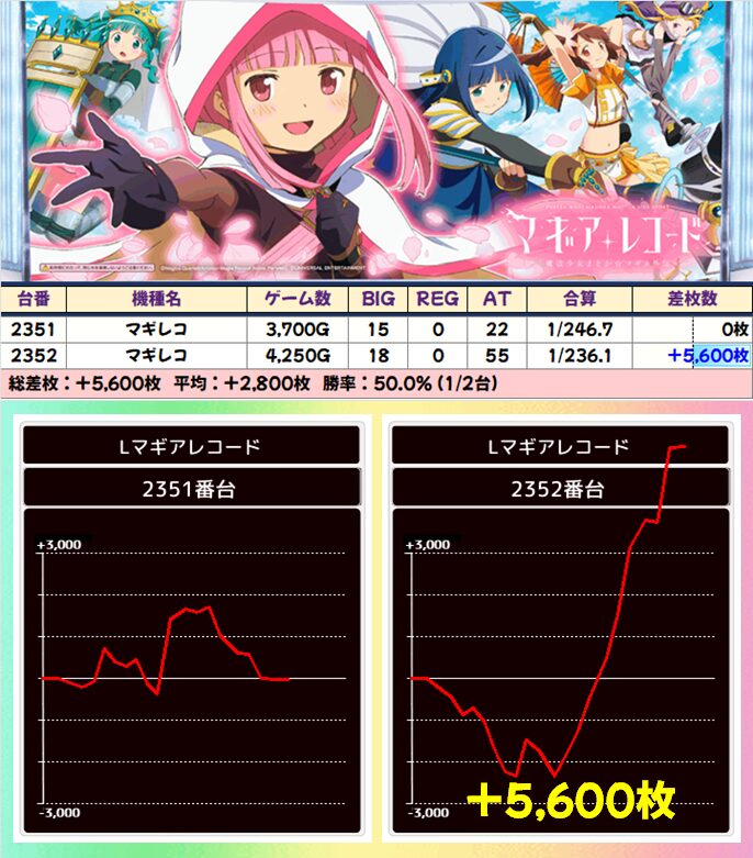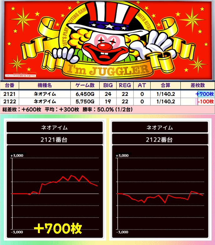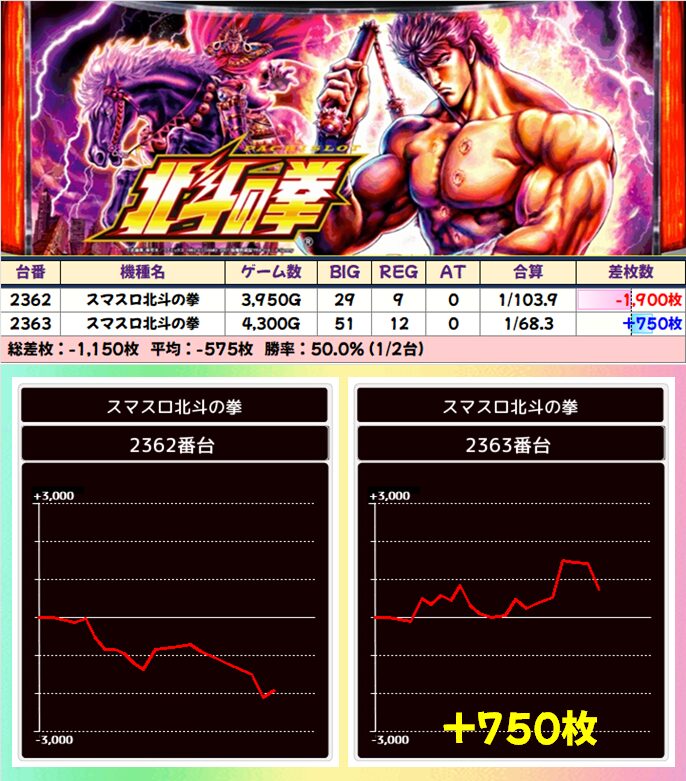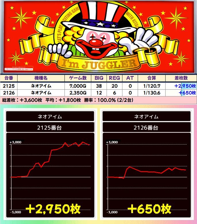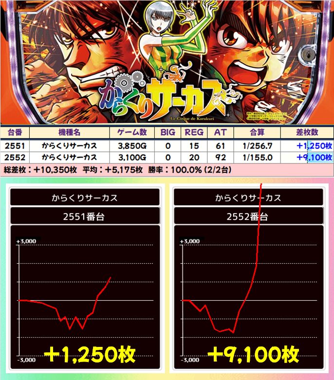 結果が素晴らしかったので先出しをしますが、「平均+185枚&総差枚+67,650枚」と抜群でした!