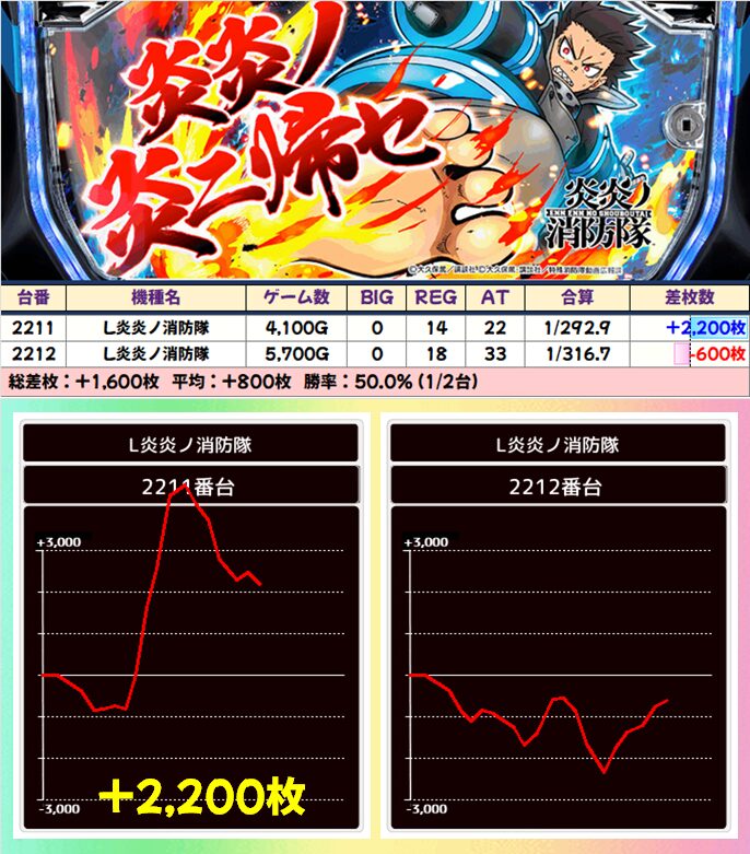 炎炎ノ消防隊2(1/3台+)➡平均+4,567枚