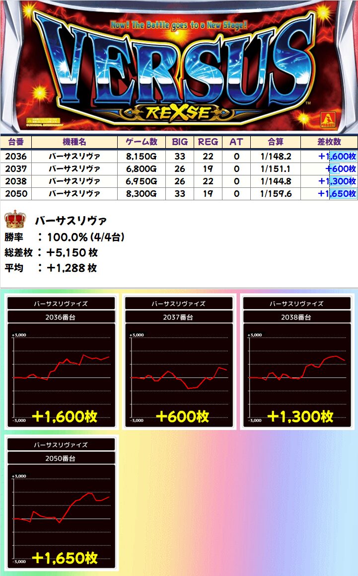 バーサスリヴァ(4/4台+)➡平均+1,288枚