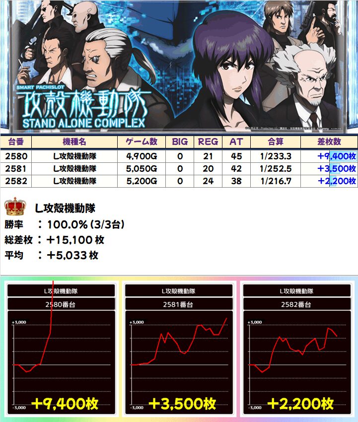 L攻殻機動隊(3/3台+)➡平均+5,033枚