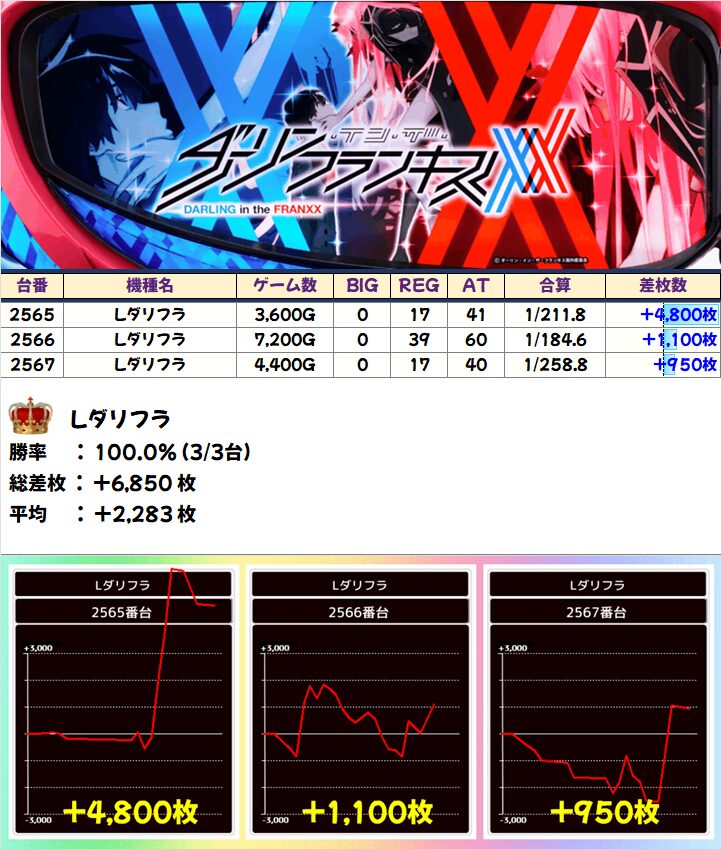 Lダリフラ(3/3台+)➡平均+2,283枚