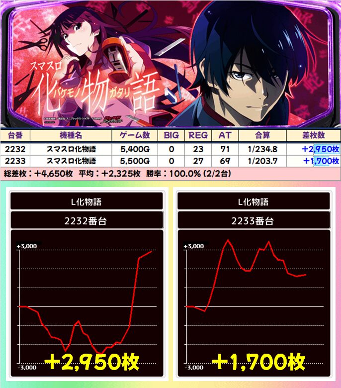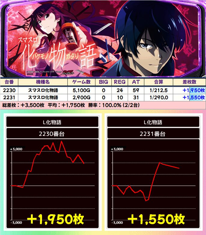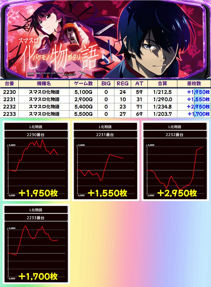 スマスロ化物語(4/6台+)➡平均+933枚