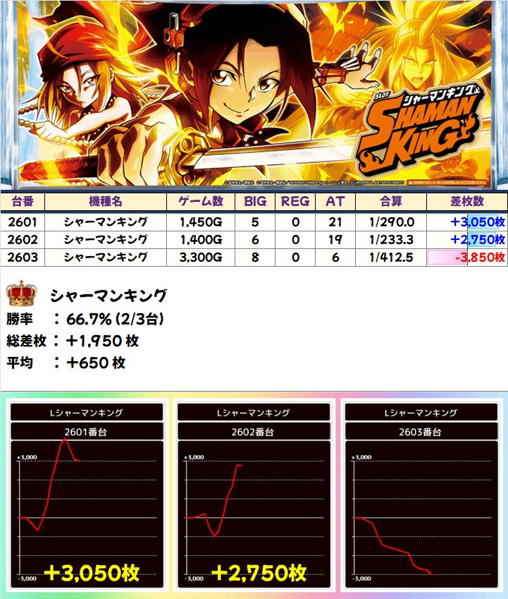 シャーマンキング(2/3台+)➡平均+650枚