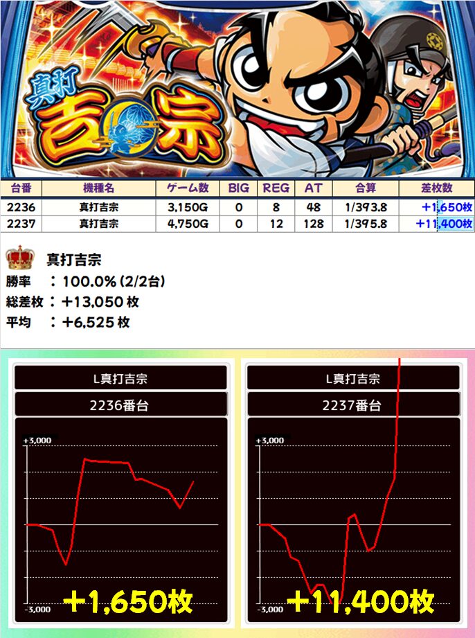 真打吉宗(2/2台+)➡平均+6,525枚