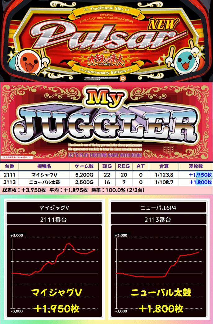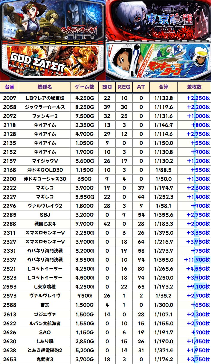 結果が良かったので先出ししますが、今回も平均+115枚&総差枚+2.3万枚オーバーと流石の結果に!