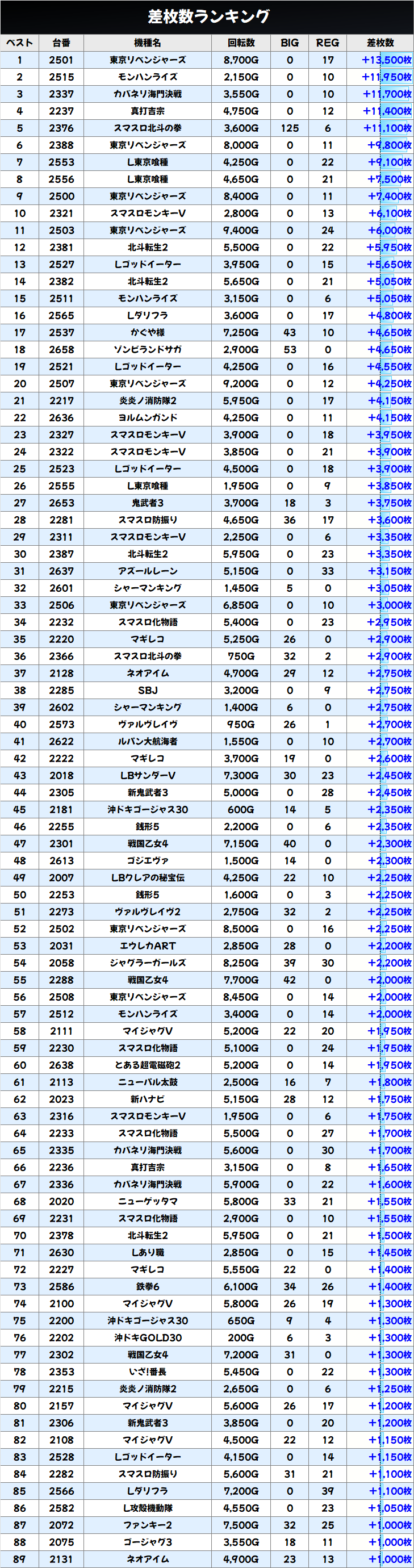 差枚数ランキング&島図チェック!