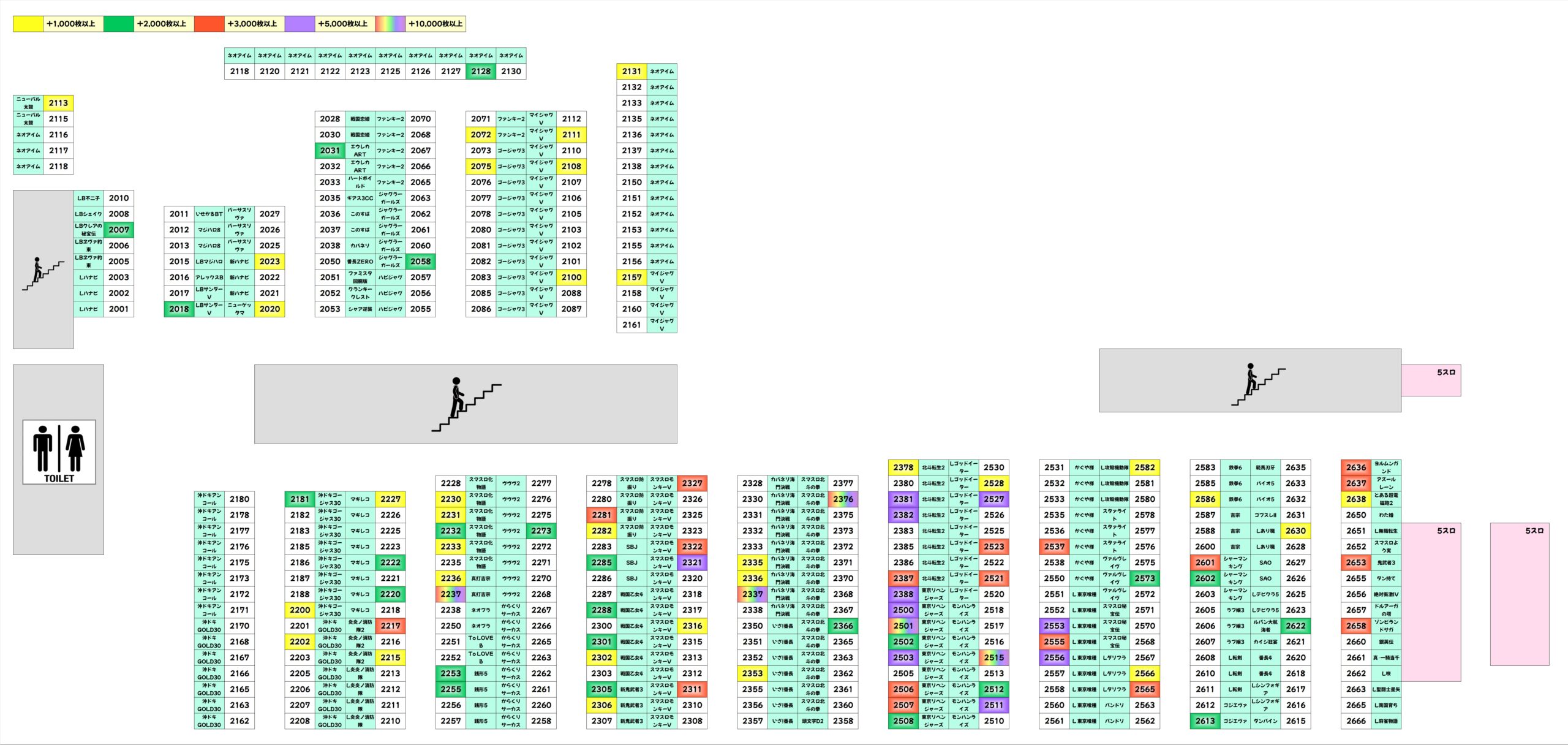 この日は「万枚オーバーが5台、+2000枚以上が57台、+1000枚以上が約90台」と盛り上がりをみせいていました!